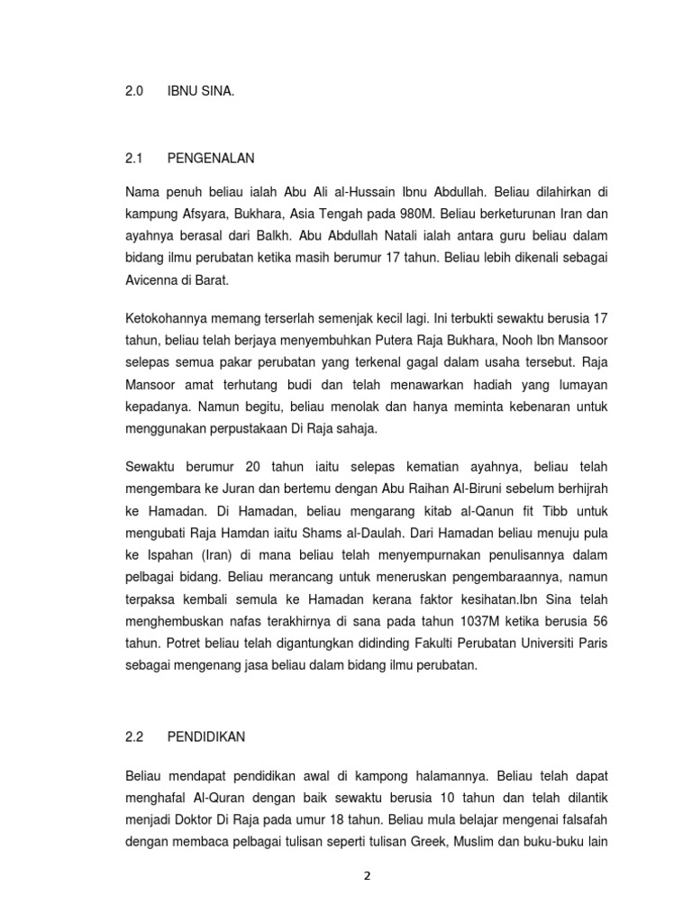 Iktibar Daripada Sejarah from imgv2-1-f.scribdassets.com Kemudian ibnu sina hijrah ke isfahan, ibnu sina meninggal dunia sebab sakit yang diderita ibnu sina yaitu penyakit disentri pada pada tahun 428 hijrah dalam sejarah kehidupannya, ibnu sina juga dikenal sebagai seorang ilmuwan yang sangat produktif dalam menghasilkan berbagai karya buku. Ibnu sina biografi dan aqidahnya. Ia juga seorang penulis yang produktif yang sebagian besar karyanya adalah tentang filosofi dan kedokteran. Ibnu sina percaya bahwa banyak diagnosa dapat dilakukan dengan mendengarkan degup jantung dan memeriksa urin, dan sebagian besar bukunya memberikan petunjuk bagaimana melakukan diagnosa lewat warna, kekeruhan, dan bau urin. Banyak ulama yang sudah menganggap beliau keluar dari islam karena. Beberapa orang berpendapat bahwa sebutan karantina saat ini. Menjelaskan sejarah ketokohan ibnu sina. Tokoh satu ini saat terkenal dalam duani kedokteran karena sumbangsihnya terhadap perkembangan ilmu biografi ibnu sina.