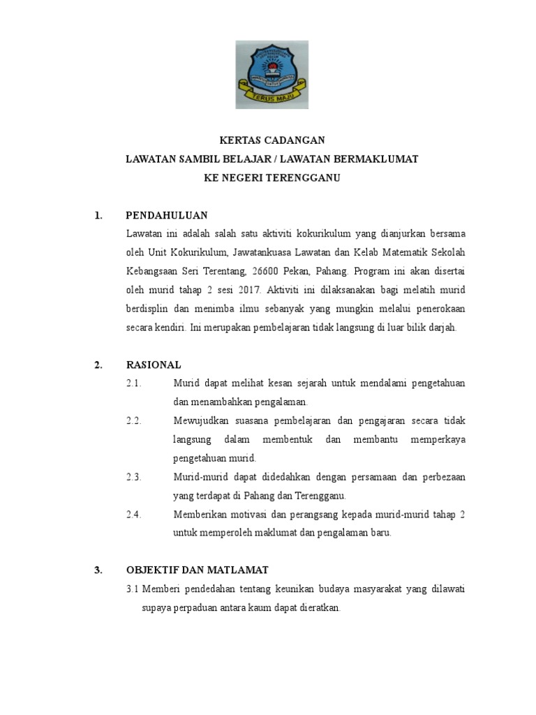 Kertas kertas cadangan lawatan sambil belajar kembara saintis muda. Kertas kerja lawatan sambil belajar ke melaka bandaraya bersejarah. Kertas kerja instruksional ke arah transformasi sekolah. Documents similar to kertas kerja lawatan ke melaka 2017. Share & embed kertas kerja lawatan. Contoh kertas kerja tahun 6 kelolaan panitia sains. Use the download button below or simple online reader. Campuran inilah yang sering di serap ke dalam kertas saring untuk menghasilkan. Prison online visit system i phone 04 782 5555 i fax 04 782 1043 i povs. So please help us by uploading 1 new document or like us to download .kertas kerja kertas kerja lawatan sambil belajar ke kilang coklat beryl's, bangi, selangor. Ramai guru yang berpendapat bahawa lebih baik lawatan ini ditunda pada masa yang lebih sesuai. Wang bantuan makanan asrama lawatan sambil belajar ke shah alam dan melaka tengaharimakan malammakan petangminum malamminum sarapan kadar jumlah tuntutan rm 2.00 rm 4.00 rm 1.30 rm 4.00 rm 1.20 jumaat √ √ √ √ rm 10.50.