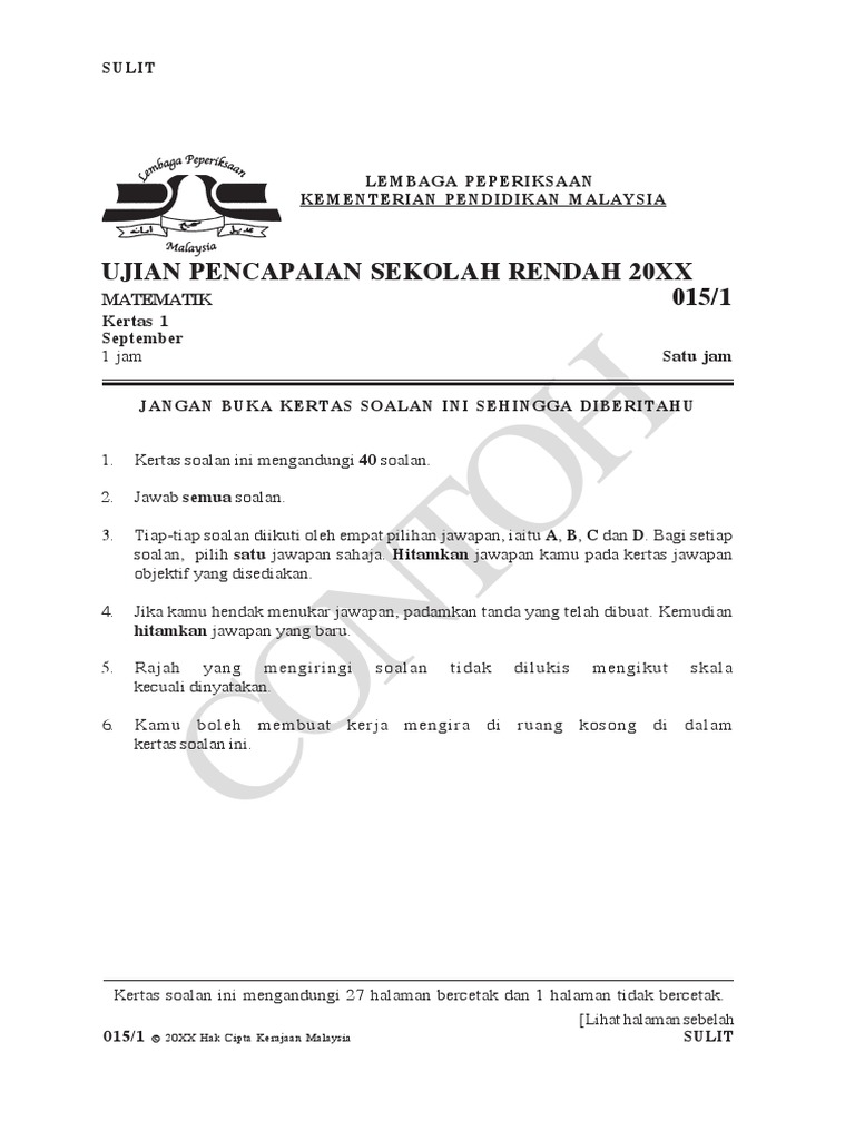 Related : Ujian Pencapaian Sekolah Rendah - SEKOLAH KEBANGSAAN TUN SYED AHMAD SHAHABUDIN: MAKLUMAN ... : Malay), is a national examination taken by all students in malaysia at the end of their sixth..
